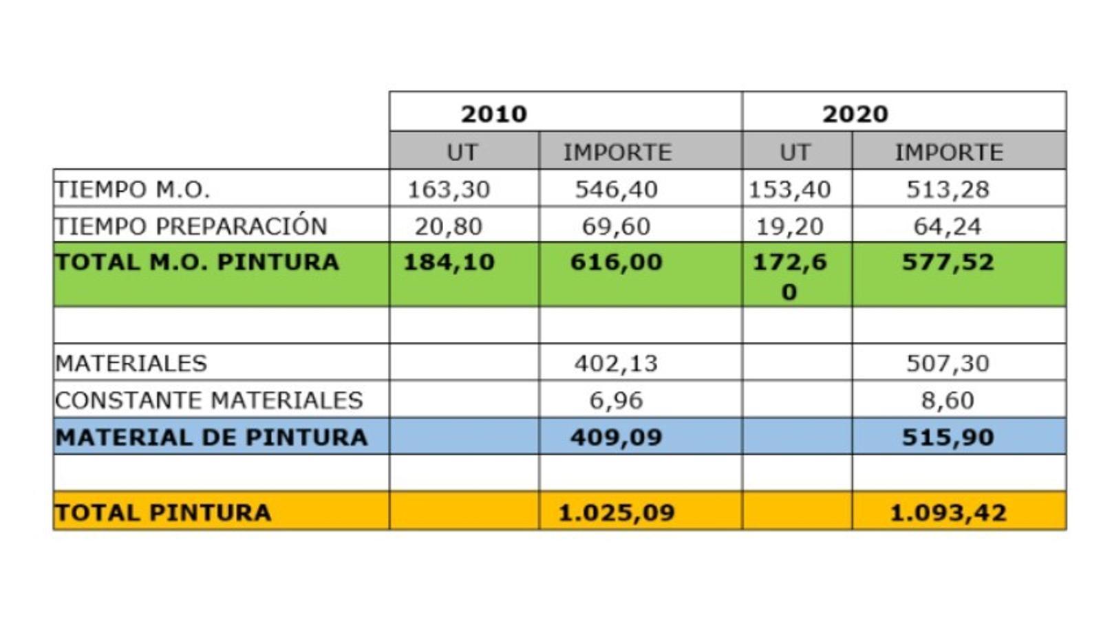 La Federación de Empresarios del Metal de Alicante (Fempa) ha querido demostrar con un ejemplo real cómo los baremos, no solo no han aumentado el número de horas o materiales de pintura, sino que en algunos casos han ido progresivamente bajando en los últimos diez años.