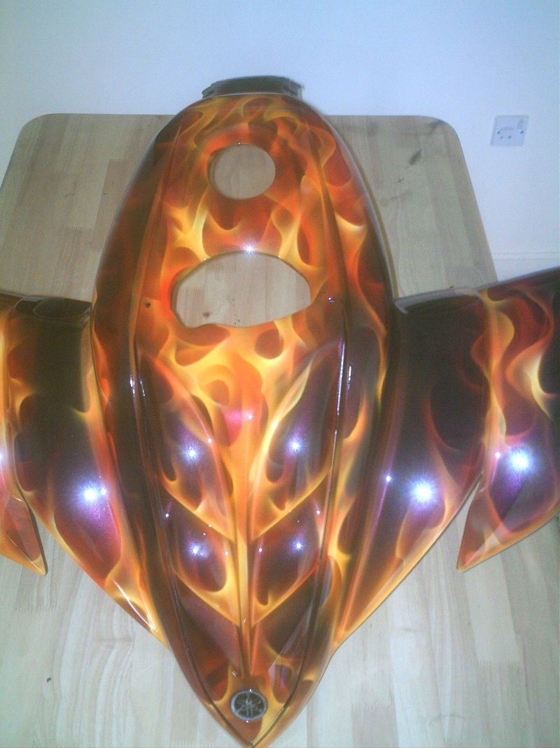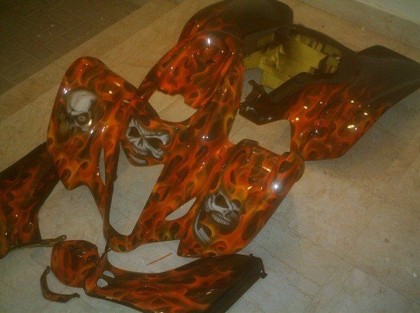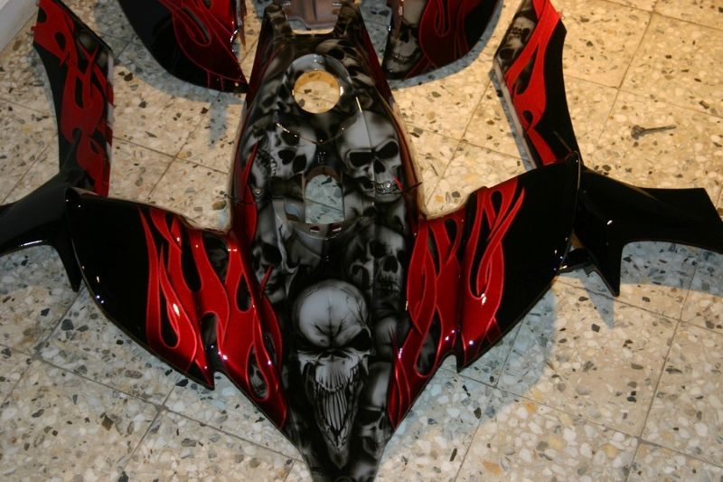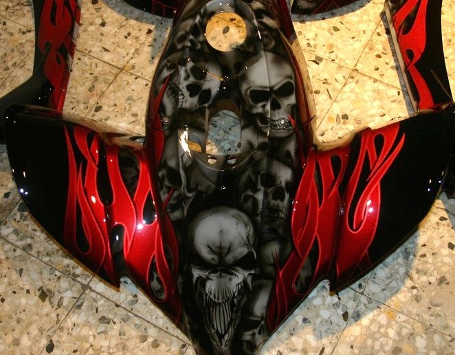 Personalmente he realizado diseños muy complejos, inspirándome en uno de mis mentores, un pintor custom austríaco (Markus Pfeil Design), uno de los mejores artistas mundiales en llamas custom.