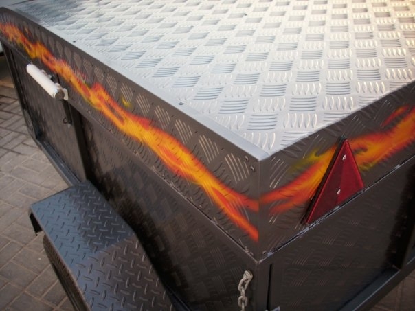 Para esta técnica se necesitan plantillas especiales para llamas y un aerógrafo (no sirve una pistola grande, aunque puede usarse mini pistola en vehículos grandes).