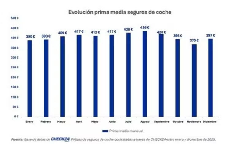 "En Check24 continuamos observando atentamente la evolución de la prima media del seguro de coche, analizando sus registros, el 2025 se cierra de manera similar a como se inició, con la prima media por debajo de los 400 euros, tras asistir a fluctuaciones significativas a lo largo del ejercicio", ha detallado el consejero delegado de la compañía, Timm Sprenger.