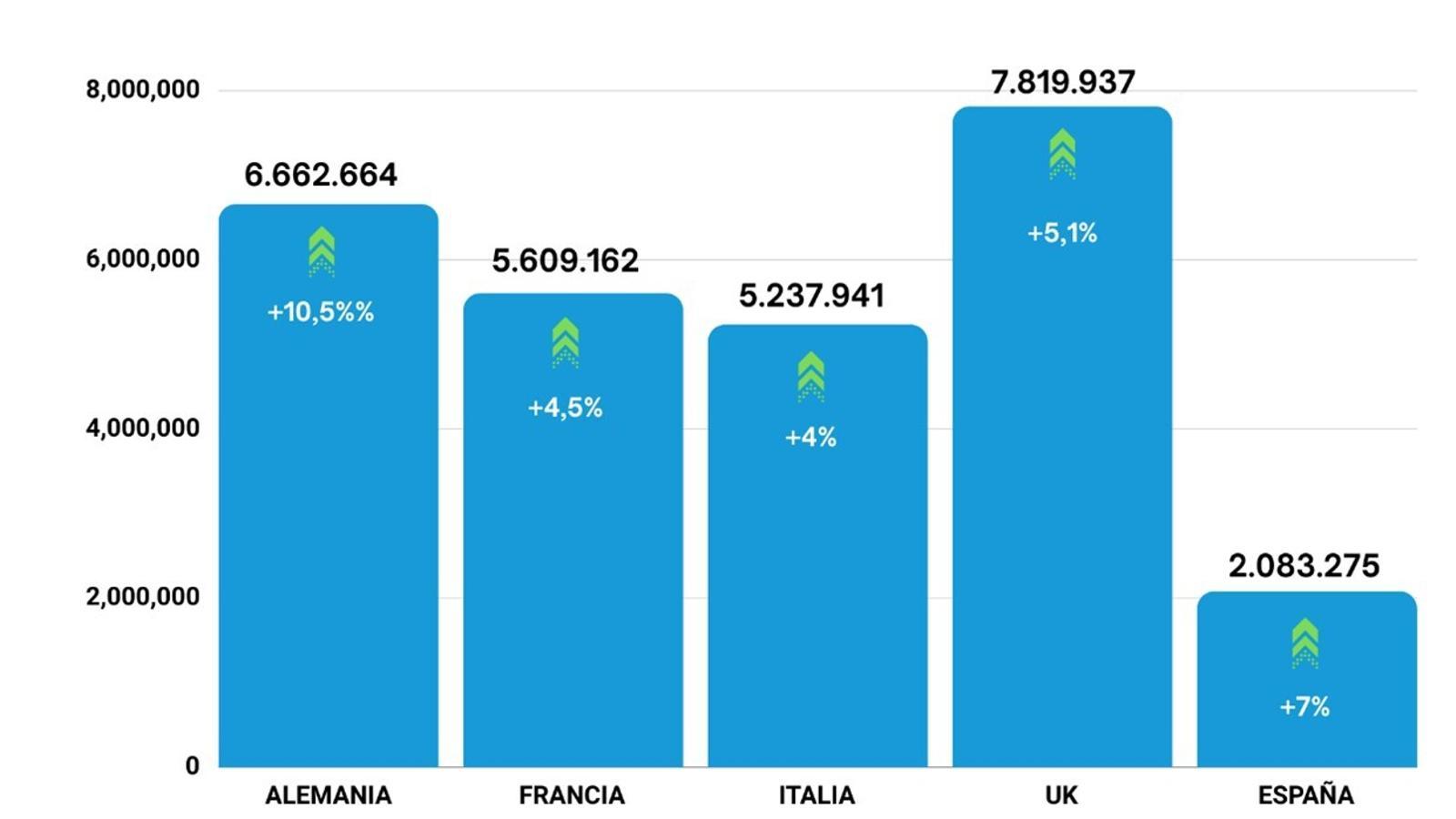 Entre los cinco principales mercados europeos (Alemania, Francia, Italia, Reino Unido y España), se espera que España registre el mayor crecimiento, solo por detrás de Alemania, donde se prevé que aumente un 10%.