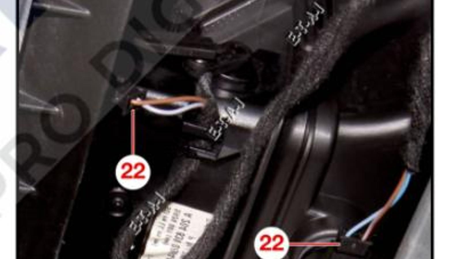 - En el lado izquierdo del salpicadero, desconectar los conectores (22) en el tubo y el difusor lateral y déjelos a un lado (Figura 13).