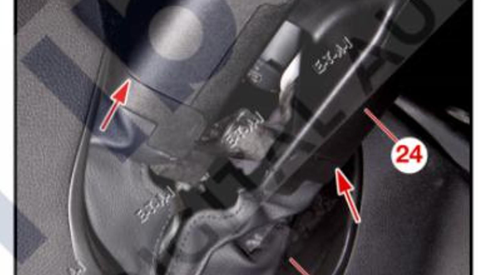 - Desmontar el fuelle (23) de la columna de dirección acercando los extremos superiores del fuelle (flechas).