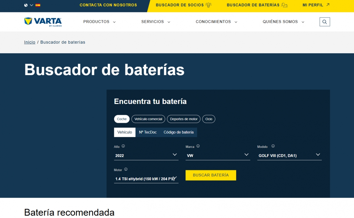 Por todos estos motivos, es recomendable utilizar herramientas como el Buscador de Baterías del VARTA Partner Portal, que con tan solo incluir unos breves datos sobre el vehículo (año, marca, modelo, motorización) es capaz de proporcionar información detallada sobre el tiempo de sustitución, el manual de instalación con explicaciones paso a paso, y el modelo de batería VARTA recomendado.