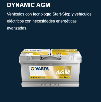 La plataforma nos indica de manera inmediata el modelo de batería que mejor se adapta a cada vehículo. En este caso, la batería recomendada es la VARTA Dynamic AGM (A5), específica para vehículos eléctricos con necesidades energéticas avanzadas.