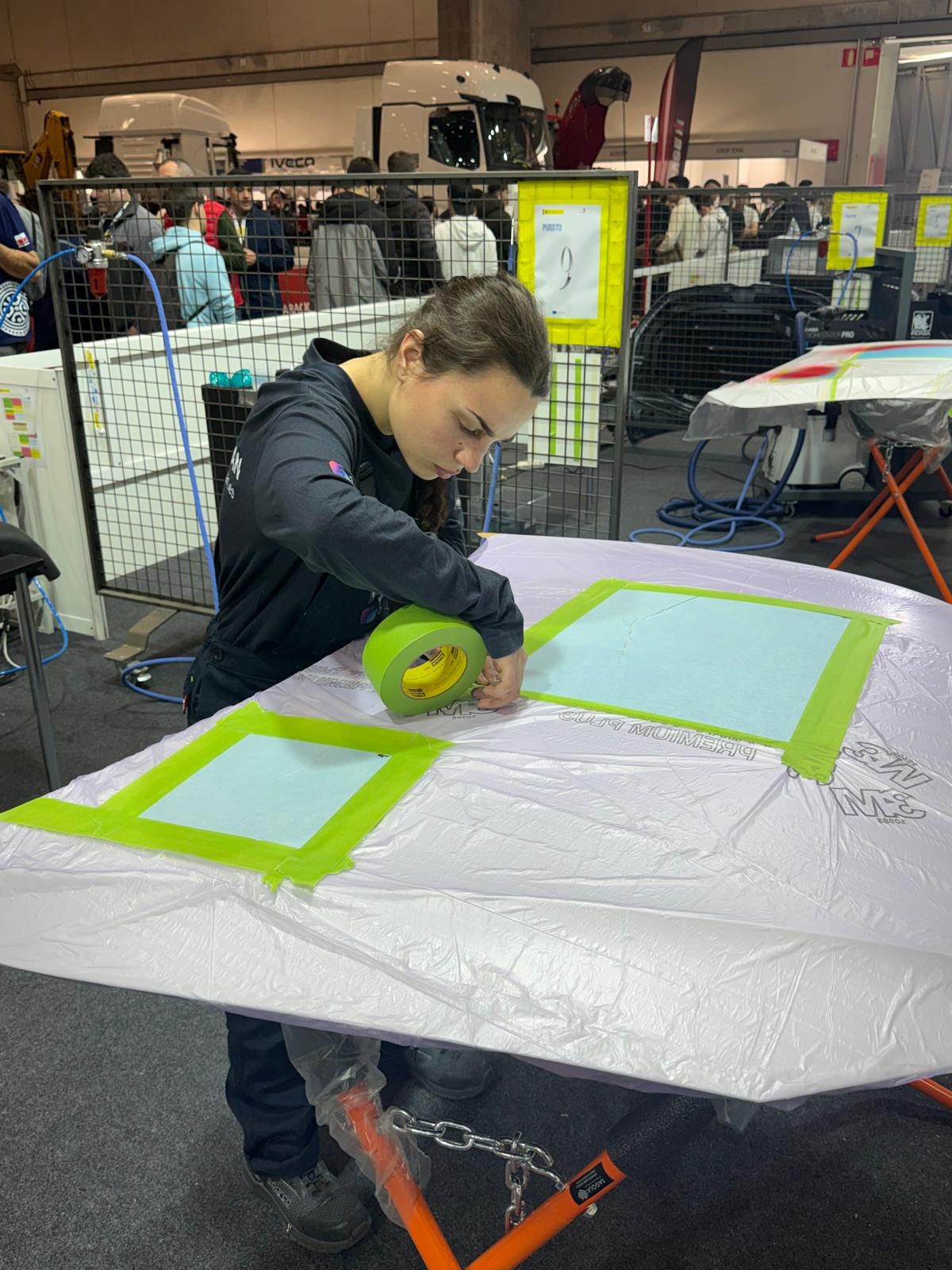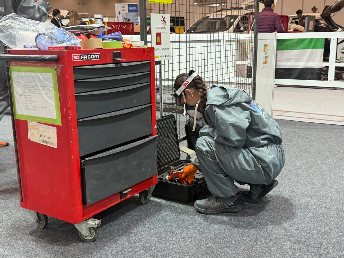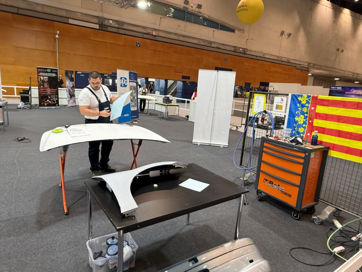 "Estoy disfrutando mucho de la experiencia, lógicamente, no somos robots y habrá algún fallo, pero estoy satisfecha con los retos que estoy realizando, así que a seguir haciéndolo lo mejor posible y si ganamos, pues, mira... Eso que nos llevamos, pero somos 18 y el nivel es muy alto, así que sólo pienso en disfrutar de cada prueba que haga", comenta. Concretamente, la competición en pintura -de miércoles 25 a viernes 27- consta de seis pruebas diferentes: embellecimiento de capó, enmascarado de superficies, personalización del capó, ajuste de color, embellecimiento de paragolpes y reparación de aleta. Todas ellas recibirán una puntuación de los evaluadores -que ejercen durante las mismas como un profesor más-, cuya media determinará la clasificación final y el ganador, que acudirá a los Mundiales, en Shanghai (China).
